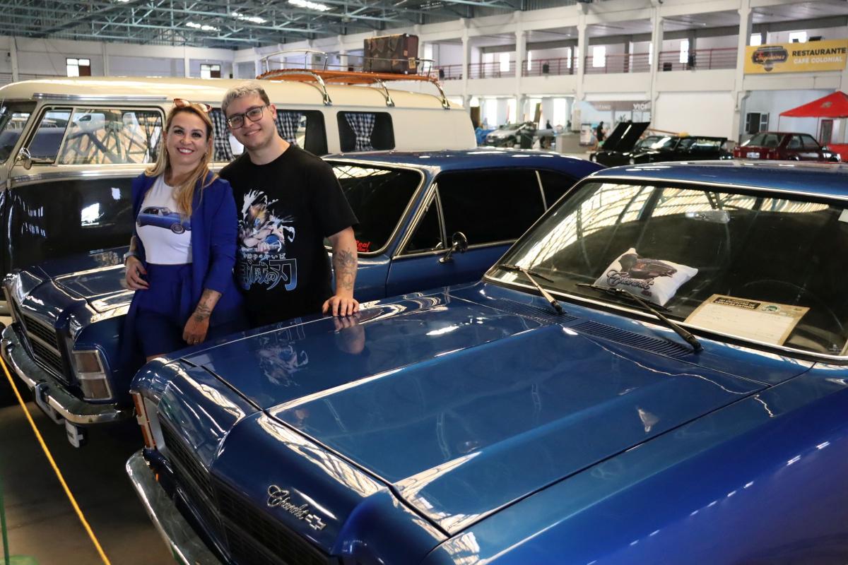 Michelly Dias Pereira e o filho Dyogo chegaram nesta sexta-feira (6) para a exposição de veículos antigos que acontece neste fim de semana (6 e 7) na Promosul. Eles vieram rodando de Curitiba/PR, cada um com seu Opala ano 1978, e participam pela primeira vez do encontro de antigos em São Bento do Sul.